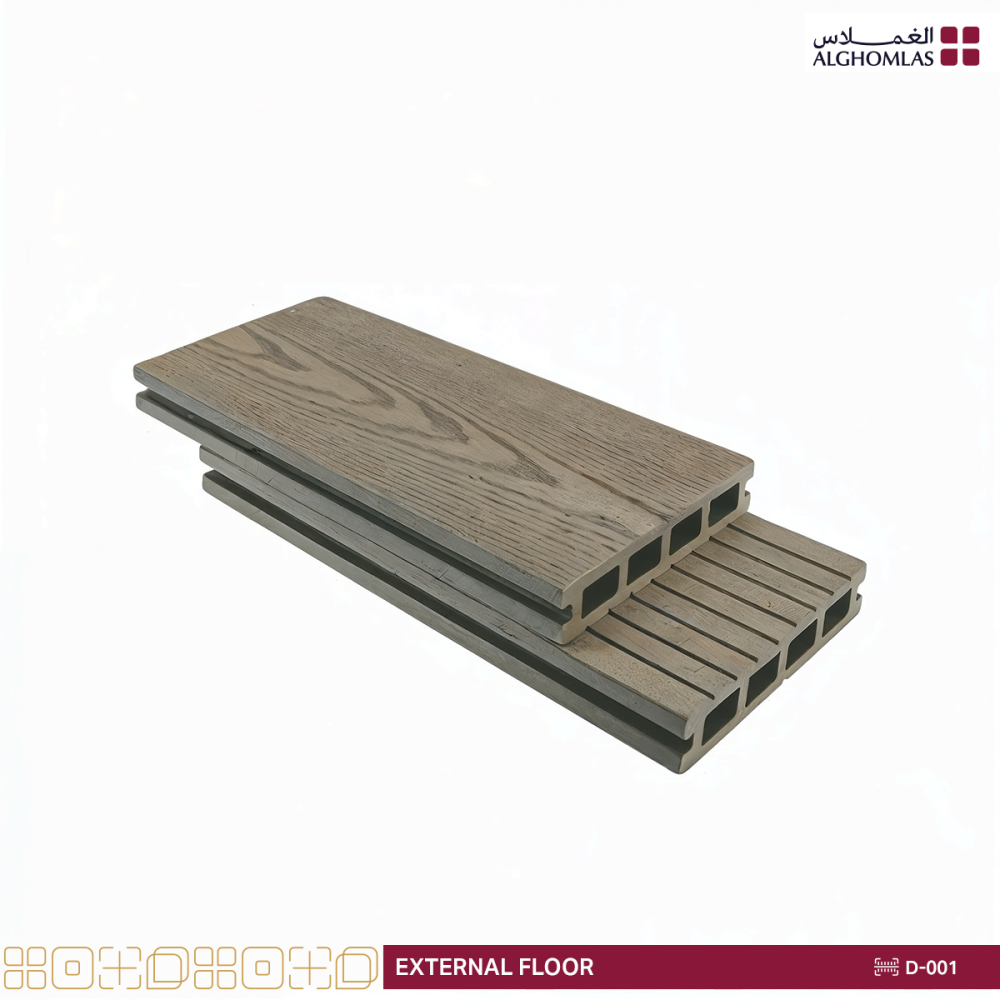 ارضيات WPC الخارجية من الغملاس يجمع جمال الخشب الطبيعي مع أداء عملي ومقاومة وجودة عالية —اختيار موثوق بضمان 5 سنوات.