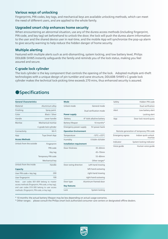 - الطاقة الذكية: تنبيه للبطارية المنخفضة وضمان عمل القفل في جميع الأوقات.