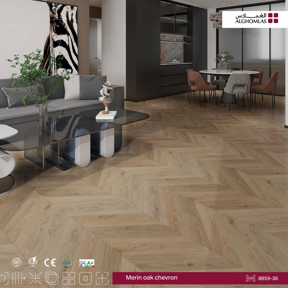 باركيه شيفرون EPC من الغملاس يمنحك فخامة وقوة الباركيه، في تصميم مقاوم للماء وسهل العناية. خيار مثالي للجمع بين الأناقة والأداء العالي.